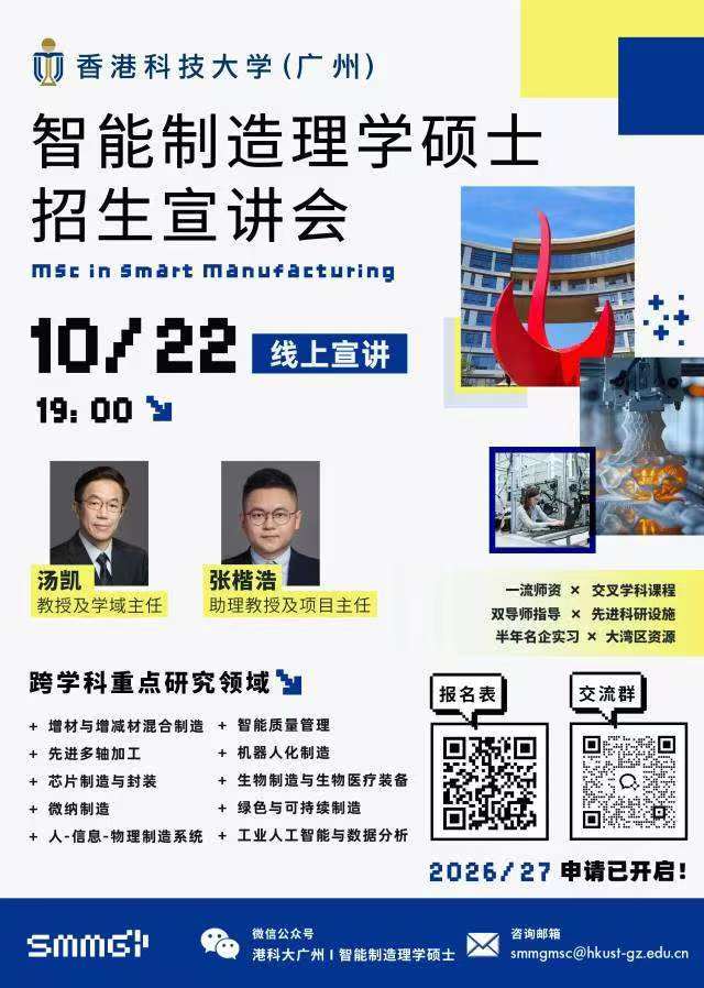 1. 香港科技大学广州|智能制造理学硕士学位项目招生宣讲会—线上场